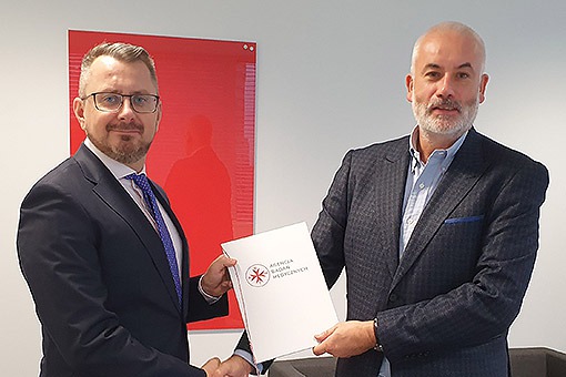 Prof. Piotr Czauderna wręczył Jakubowi Berezowskiemu powołanie na stanowisko zastępcy prezesa Agencji Badań Medycznych do spraw finansowania badań.