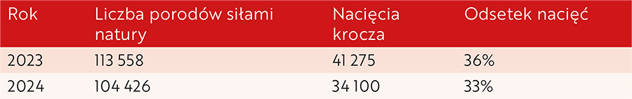 Maciejewski informuje, że w 2024 r. odsetek nacięć wynosił 33 proc., rok wcześniej 36 proc.