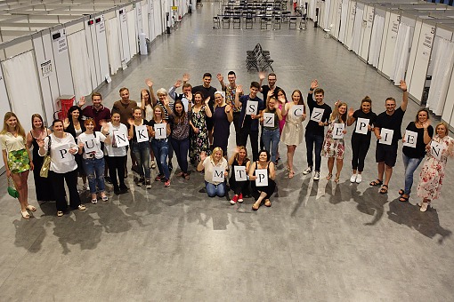 Od początku działalności naszego punktu przyświecały: po pierwsze – sprawność organizacyjna, po drugie – gościnność. Punkt szczepień miał być dobrze naoliwioną machiną – niczym hala odlotów portu lotniczego, jednak nie bezduszną, lecz z elementami gościnności. Dzięki doświadczeniu z zakresu wolontariatu hospicyjnego i szpitalnego w jednostkach Szpitala Klinicznego Przemienienia Pańskiego UM w Poznaniu udało się pozyskać prężną grupę wolontariuszy, którzy z uwagi na sytuację epidemiologiczną nie mogli pracować na oddziałach czy w Hospicjum Palium, a którzy przyjęli misję pomocy i usprawnienia działalności punktu. Pod charyzmatycznym przywództwem Barbary Grochal, cenionej współtwórczyni wielkopolskiego wolontariatu, stawili się w trudnym czasie trzeciej fali zakażeń koronawirusem, aby pomagać nam w opiekowaniu się pacjentami i przeprowadzić ich przez proces szczepienia. Do zespołu punktu, oprócz dużego grona lekarzy, pielęgniarek i rejestratorów, a także personelu administracyjnego, dołączyli na stałe wolontariusze. Łącznie podczas działalności wspierało nas ponad 100 społeczników.