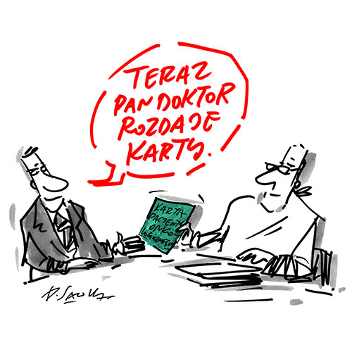 - Tematyka medyczna nie jest mi obca, rysuję dla Menedżera Zdrowia, dla lekarzy rodzinnych – mówi Henryk Sawka. – Dzisiaj rysunek to atrakcyjna forma przekazu, który może powiedzieć więcej niż słowa. W rysunkach do pakietu onkologicznego chodziło o to, aby one nie były zbyt przygnębiające, ale także nie za lekkie. Dlatego, aby wybrać te odpowiednie rysunki poświęciłem wiele czasu i uwagi. Chodziło o najprostszą formę przekazu, która pomoże pacjentom w orientowaniu się w nowych przepisach.