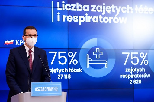 – Polska znajduje się w najtrudniejszym momencie pandemii – oświadczył premier Morawiecki i poinformował, że 24 marca zajętych było ponad 70 proc. łóżek covidowych i ponad 70 proc. łóżek respiratorowych. – Jesteśmy o krok od przekroczenia granicy, poza którą nie będziemy mogli we właściwy sposób leczyć obywateli. Zrobimy wszystko, by uniknąć takiego scenariusza. Sytuacja epidemiczna nie pozostawia nam wyboru – musimy wprowadzić nowe ograniczenia – wskazał premier.