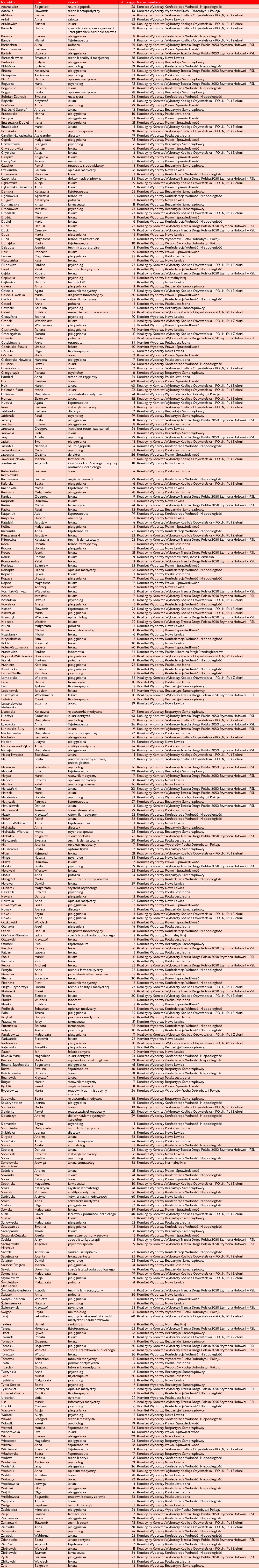 To można sprawdzić na stronie internetowej Państwowej Komisji Wyborczej – przejrzeliśmy listy kandydatów i wybraliśmy tych, którzy są związani z ochroną zdrowia.