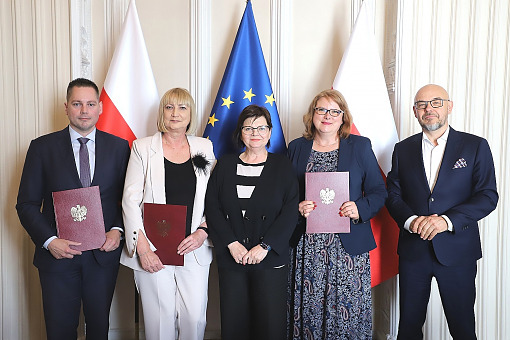 Od lewej: Robert Sutarczyk, Teresa Gwizdak, Izabela Leszczyna, Marta Pietrasiak i Filip Nowak