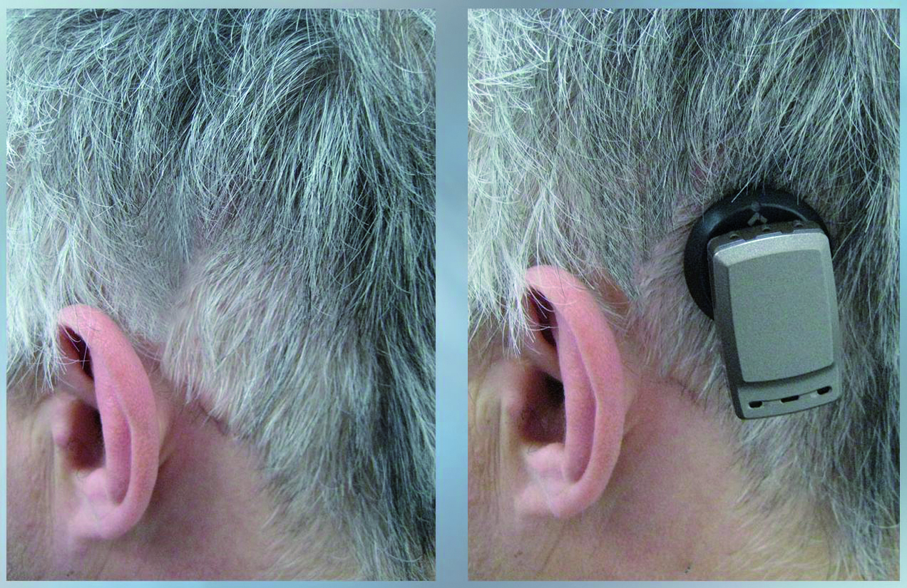 Implant jest całkowicie schowany pod skórą i praktycznie niewidoczny. Mocowanie na zewnątrz niewielkiego procesora dźwięku umożliwi specjalny magnes.