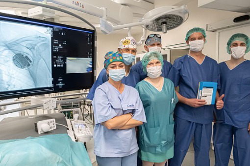 U pacjenta z przewlekłą niewydolnością serca, zagrożonego nagłym zgonem sercowym zespół Oddziału Elektrokardiologii I Kliniki Kardiologii CSK UCK WUM – prof. Marcin Grabowski, dr med. Marcin Michalak i dr Jakub Kosma Rokicki – wykonał zabieg implantacji kardiowertera-defibrylatora, który oprócz standardowych opcji terapeutyczno-diagnostycznych, dodatkowo daje możliwość zdalnej kontroli z zastosowaniem smartfonu pacjenta.