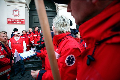 Przed siedzibą Ministerstwa Zdrowia w Warszawie protestowali ratownicy medyczni, którzy chcą lepszych zarobków i powołania samorządu zawodowego, a jednocześnie krytykują ustawę o minimalnych zarobkach w ochronie zdrowia.