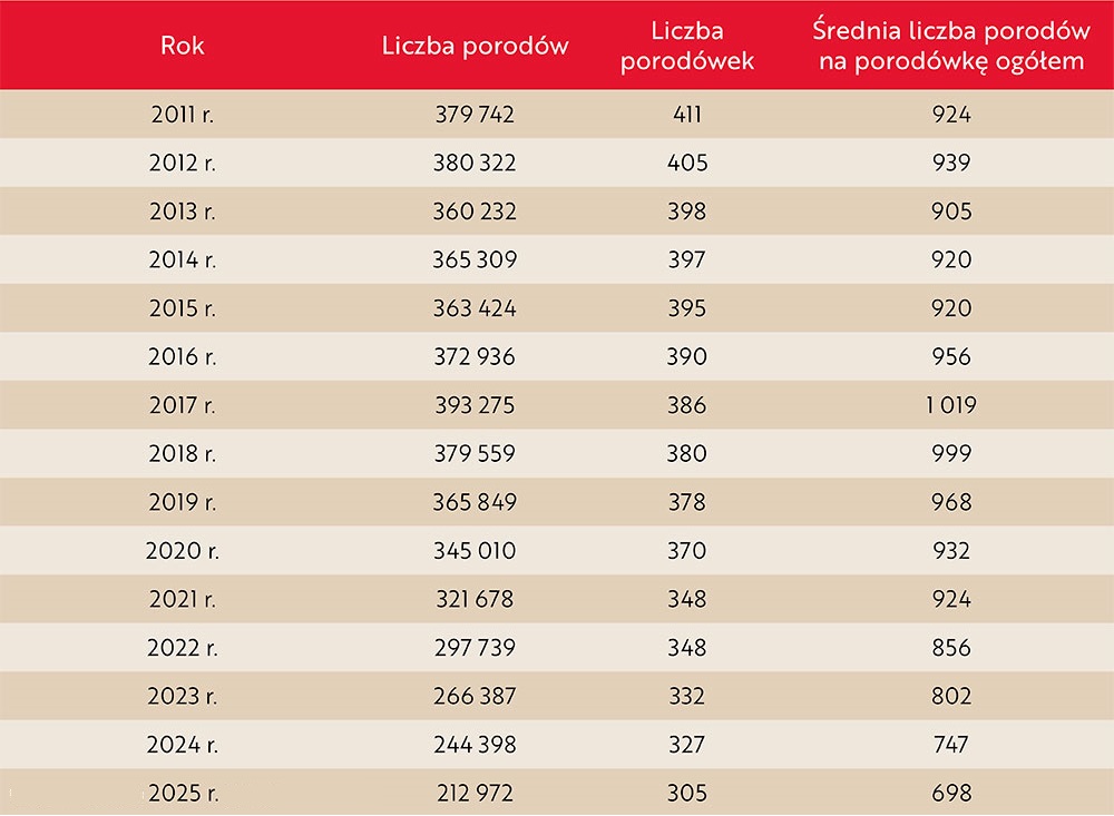 Wraz z tymi zmianami stopniowo likwidowane są porodówki – odpowiednio z 386 do 305.