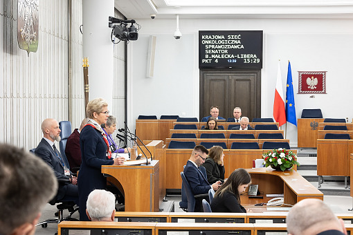 Senatorowie także nie wprowadzili poprawek do ustawy o zmianie ustawy o Krajowej Sieci Onkologicznej – w niej przedłużono do 1 kwietnia 2025 r. termin przekazywania do systemu danych o sprawowanej opiece onkologicznej przez podmioty wchodzące w skład Krajowej Sieci Onkologicznej. W noweli zmieniono na 31 marca 2025 r. termin pierwszej kwalifikacji placówek na poszczególne poziomy zabezpieczenia opieki onkologicznej – ma to umożliwić Narodowemu Funduszowi Zdrowia rzetelną weryfikację podmiotów wykonujących działalność leczniczą pod względem kryteriów warunkujących przynależność do poziomu zabezpieczenia opieki onkologicznej KSO, a także zapewnić im czas niezbędny na przygotowanie zasobów kadrowych, organizacyjnych i ustalenie zasad przepływu informacji między nimi.