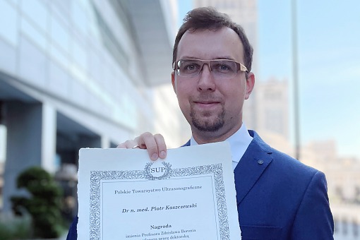 Dr n. med. Piotr Kaszczewski z Kliniki Chirurgii Ogólnej, Endokrynologicznej i Chorób Naczyń WUM otrzymał nagrodę imienia profesora Zdzisława Boronia, przyznaną przez Polskie Towarzystwo Ultrasonograficzne za najlepszą pracę doktorską z zakresu ultrasonografii obronioną w latach 2016–2021. Rozprawa nosi tytuł „Ultrasonograficzna ocena hemodynamiki przepływu u chorych ze zwężeniami tętnic szyjnych”.