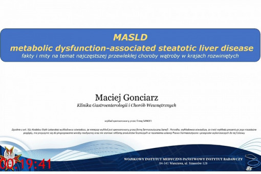 Zachęcamy do zapoznania się z wykładem prof. Macieja Gonciarza, który w bardzo ciekawy i zwięzły sposób przedstawia fakty i mity na temat stłuszczeniowej choroby wątroby. Podczas wykładu dowiedzą się państwo o korzyściach oraz zagrożeniach związanych ze zmianami w nomenklaturze i algorytmach diagnozowania tej choroby, które mogą być przydatne w codziennej praktyce lekarskiej, a także o niezbędnych fosfolipidach.