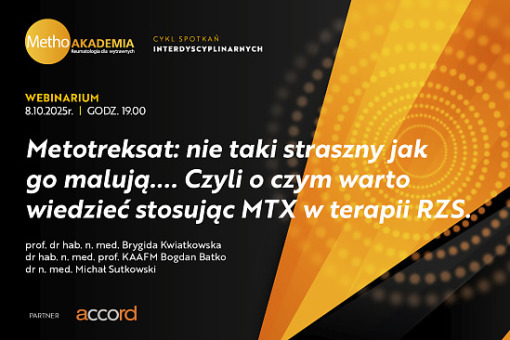 Zapraszamy na kolejne spotkanie online w ramach cyklu "Methoakademia - reumatologia dla wytrawnych", zaplanowane na 8 października o godzinie 19:00.