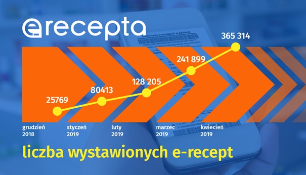 Liczba wystawionych e-recept przekroczyła 8 maja 2019 roku milion. Jak informuje resort zdrowia, to kolejny krok w informatyzacji systemu ochrony zdrowia w Polsce oraz wynik dobrej współpracy z lekarzami i farmaceutami w całym kraju. Milionowa recepta elektroniczna została wystawiona w Gdańsku.