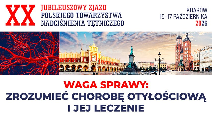 XX Jubileuszowy Zjazd Polskiego Towarzystwa Nadciśnienia Tętniczego odbędzie się od 15 do 17 października 2026 roku w Krakowie. Rejestracja na wydarzenie jest już otwarta.