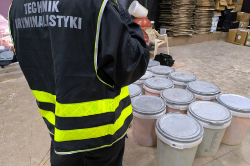 Policjanci z Otwocka zlikwidowali nielegalną linię produkującą środki farmaceutyczne. Zabezpieczyli prokainę w ilości 354 kg w postaci kryształu, 928 l prokainy w formie płynnej, 264 kg lidokainy w formie kryształu oraz inne związki chemiczne, które czekają na identyfikację.
