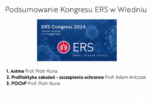 Zachęcamy do obejrzenia podsumowania ostatniego Kongresu Europejskiego Towarzystwa Chorób Płuc. Prof. Piotr Kuna i prof. Adam Antczak podsumowują najważniejsze doniesienia z obszaru astmy, profilaktyki zakażeń oraz POChP.