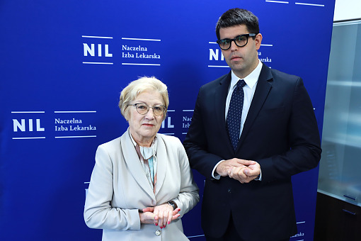 W siedzibie NIL odbyło się spotkanie prezesa Naczelnej Rady Lekarskiej Łukasza Jankowskiego z przewodniczącą Ogólnopolskiego Związku Zawodowego Lekarzy Grażyną Cebulą-Kubat. Rozmowa dotyczyła kluczowych wyzwań związanych z proponowanymi zmianami w zasadach zatrudniania lekarzy oraz aktualnej sytuacji w systemie ochrony zdrowia.