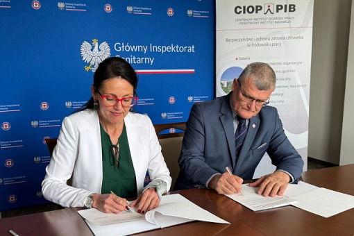 Główny inspektor sanitarny dr n. med. Paweł Grzesiowski i dyrektor Centralnego Instytutu Ochrony Pracy – Państwowego Instytutu Badawczego Agnieszka Szczygielska podpisali 11 czerwca porozumienie o współpracy pomiędzy instytucjami.