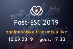 Ogólnopolska transmisja live Post-ESC 2019 odbędzie się 10 września br. o godz. 17:30. Udział w webinarium jest bezpłatny, ale obowiązuje wcześniejsza rejestracja, dostępna pod adresem: www.termedia.pl/Konferencje/r?e=1158&l=1.